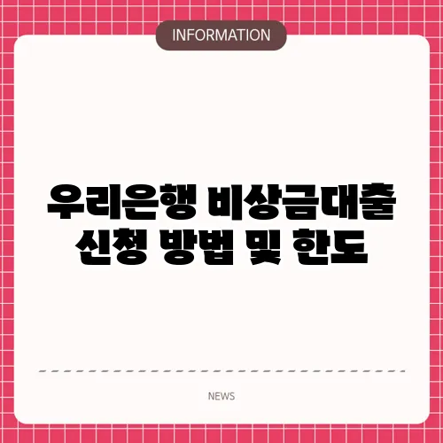 우리은행 비상금대출 신청 방법 및 한도