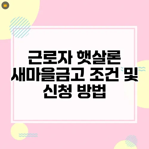 근로자 햇살론 새마을금고 조건 및 신청 방법