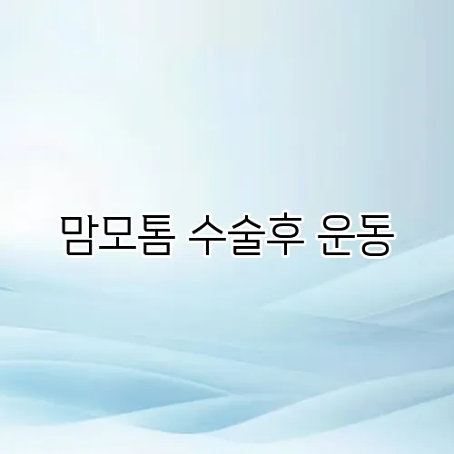 맘모톰 수술 후 운동은 신체 회복과 심리적 안정에 매우 중요한 역할을 합니다. 운동을 언제 재개할 수 있는지에 대한 고민을 덜고, 회복기를 안전하게 보내기 위해서는 전문의와 상담하며 자신의 신체 상태를 고려하는 것이 필수적입니다. 적절한 운동을 통해 건강하고 행복한 일상을 되찾을 수 있도록 노력해 보세요. 맘모톰 수술 후 운동에 대한 정보가 도움이 되었기를 바랍니다.