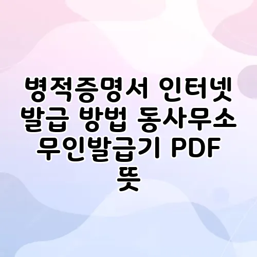 병적증명서는 군 복무를 마친 후에 꼭 필요한 서류 중 하나로, 이 문서를 필요로 하는 사람들이 점점 늘어나고 있습니다. 인터넷 발급 방법은 특히 시간을 절약하고 편리함을 제공합니다. 동사무소의 무인발급기를 사용하면 복잡한 절차를 간소화할 수 있습니다. 이번 포스팅에서는 병적증명서를 인터넷으로 발급받는 방법, 무인발급기 사용법, 그리고 PDF로 문서를 다운로드 받는 과정에 대해 자세히 설명하겠습니다.